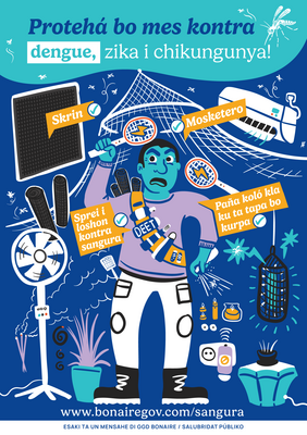 Dengue, zika, i chikungunya ta vírùsnan ku ta hasi bo malu. Bo por asta muri ora bo haña dengue. E sangura Aedes aegypti ta plama e vírùsnan. Por rekonosé e sangura akí na su pianan pretu ku strepi blanku. Na Boneiru tambe e sangura akí ta aktivo i e malesanan akí por plama.