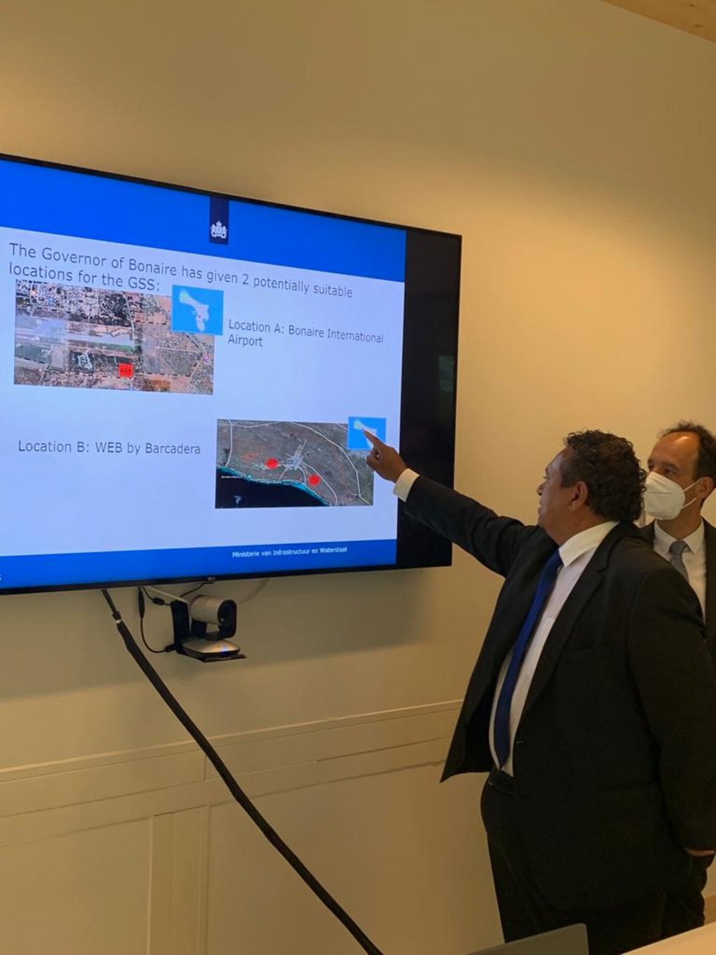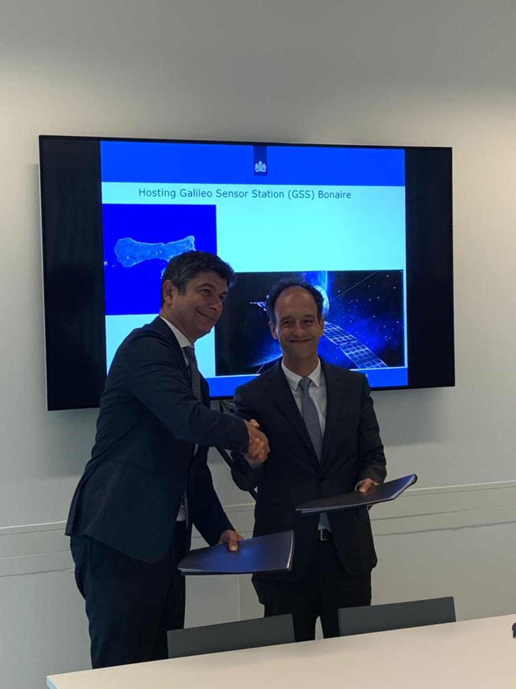 Riba 10 di mei 2022 firmamentu ofisial a tuma lugá di e ‘Administrative Cooperation Agreement related to the Galileo Sensor Station (GSS) on the Island of Bonaire (The Netherlands)’, den Galileo Reference Centre na Noordwijk. Den e akuerdo di kolaborashon akí a stipulá palabrashonnan tokante ròl i responsabilidat, gastu i planifikashon pa realisashon di e GSS na Boneiru, entre ministerio di Infrastruktura i Maneho di Awa i European Union Agency for the Space Programme (EUSPA). Na nòmber di e ministerio a firma e direktor internashonal Peter Díez i na nòmber di EUSPA a firma e direktor di EUSPA Rodrigo da Costa. Via un konekshon online gezaghèber di Boneiru Edison Rijna a presensiá e akto ofisial akí. El a gradisí ámbos organisashon pa nan aporte. A hasi eskoho pa Boneiru i e lo duna su sosten kompleto pa e proyekto akí. Ku firmamentu di e akuerdo di kolaborashon akí a duna e ‘kick-off’ formal tambe pa realisashon di e GSS na Boneiru, ku na kuminsamentu di 2024 mester ta operashonal.
