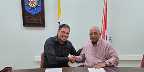 E komandante di e unidat, Kapitan Roderik Willems, huntu ku e persona di kontakto di e kuartel general, Mayor Arthur Duursma, ta hasi un bishita di kortesia na entidat públiko Boneiru.