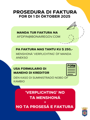 - Mester manda tur faktura na afdfin@bonairegov.com.